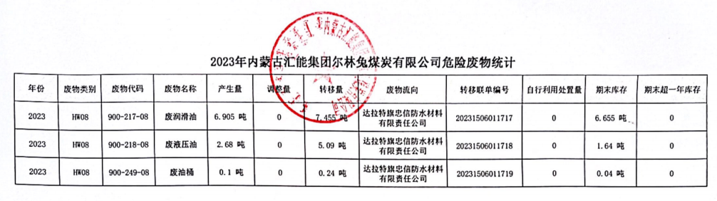 危險(xiǎn)廢物產(chǎn)生量及處置量: